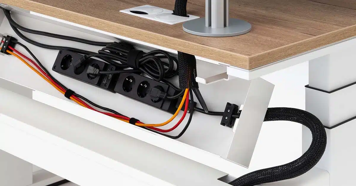 Ken je de frustratie van allerlei kabels die op en rond jouw bureau hangen? Denk aan kabels van computerschermen, internetkabels, loshangende stekkerdozen en acculaders. Iedereen heeft ermee te maken door de vele elektronische apparaten. En dit is niet goed voor de productiviteit. Bovendien kan het ook gevaarlijk zijn als er losslingerende kabels zijn. Mensen kunnen bijvoorbeeld blijven hangen en struikelen, waardoor ook kabels worden losgetrokken.