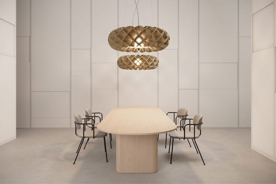 De In-Zee Halo is een prachtige design plafondlamp die ook nog eens geluidsabsorberend is.