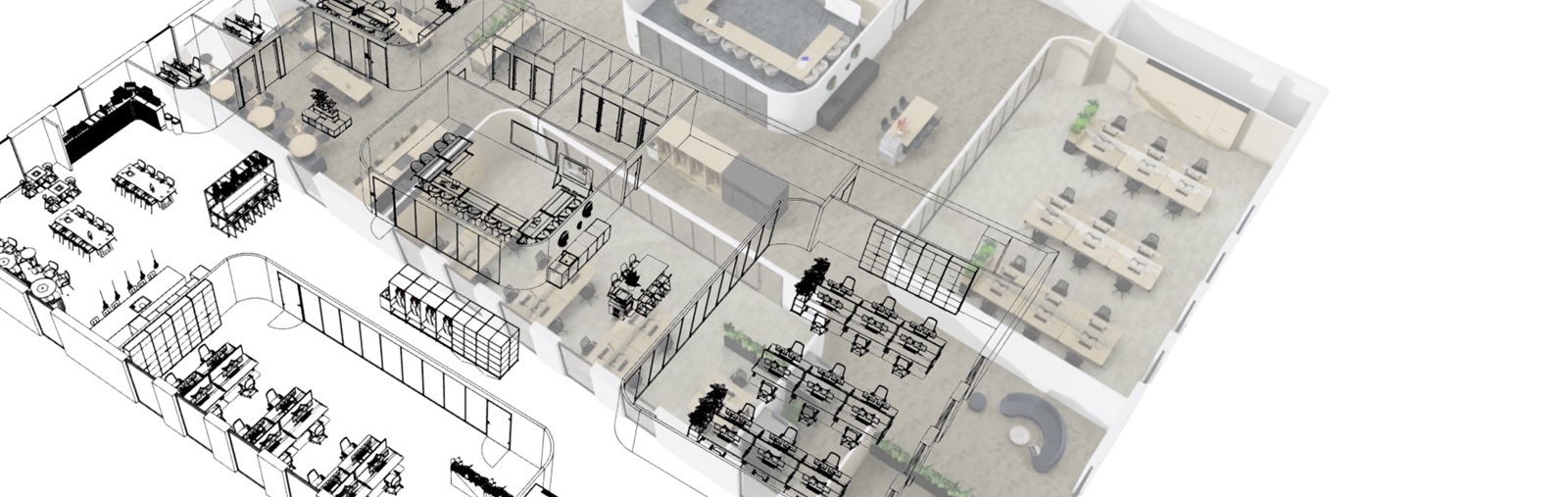 Onze experts weten de bedrijfsidentiteit te vertalen naar een passend kantoorontwerp. Je krijgt door middel van een moodboard en een 3D ontwerp duidelijk inzicht in jouw toekomstige werkomgeving.