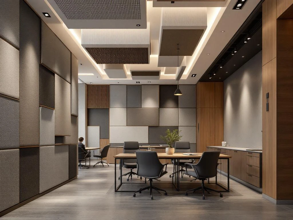 Zachte vloerbedekking, zoals tapijt of speciale akoestische vloeren, dempt voetstappen en het geluid van rollende stoelen. Plafondoplossingen, zoals akoestische tegels of hangende elementen, vangen geluid op dat anders zou weerkaatsen. Ook meubelkeuzes maken verschil: gestoffeerde stoelen, boekenkasten en planten helpen bij het absorberen van geluid. Telefooncellen of rustige werkpods bieden werknemers de mogelijkheid om zich terug te trekken voor geconcentreerd werk.